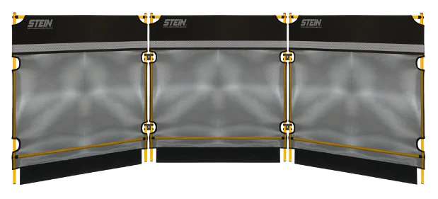 STEIN Modulärt Skyddssystem (MGS) är en omdesignad lösning från 2022 som minskar risken för flygande skräp under stubbslipning och andra arboristiska arbeten. Systemet består av tre individuella paneler som enkelt kopplas ihop till en 3,20 m lång barriär, perfekt för att skapa en säker arbetsmiljö.