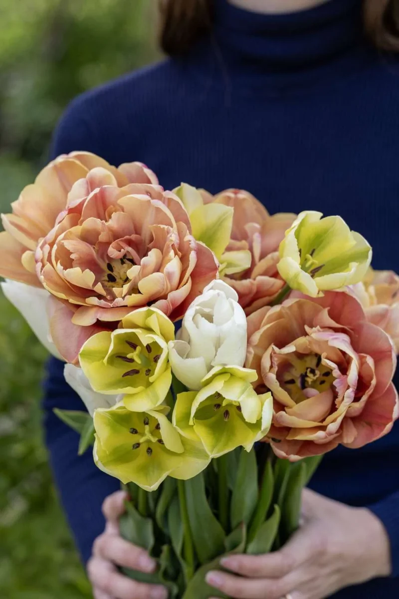 ‘Antique Lemon’ är en sofistikerad tulpanmix i dämpade toner av rosa, limegrönt och elfenben. Färgkombinationen ger en mjuk, antik känsla som passar perfekt i ljusa och stilrena vårplanteringar.
