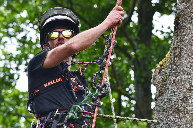 - 3-punkts hängselssystem – stödjer klättersele vid tung last som såg eller utrustning