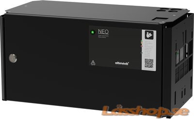 Primärswitchad batteribackup 24V 10 (A) Ampere med plats för upp till 2x 20Ah batterier. Kan kompletteras med 1-4x batteriboxar för upp till 180Ah batterikapacitet. Skydd för överbelastning, överspänning, övertemperatur, kortslutning och djupurladdning. Larm för (3 utgångar): Fördröjt nätavbrottslarm (10 sek), låg batterispänning, över/underspänning, frånkopplat batteri, cellkortslutning, laddarfel, låg systemspänning, utlöst lastsäkring samt sabotage. 1 st ingång för anslutning av larm ifrån t.ex avsäkringskort (utlöst lastsäkringsfel). 1 st dubbelpoligt avsäkrad utgång + 1 st enkelpoligt (+) avsäkrad utgång. Den välventilerade kapslingen är lackerad i svart färg med struktur, lysdiod för larmindikering samt utrustad med 3 st knockouts för kabelgenomföringar samt knockout i ryggen. Enheten kan både väggmonteras och rackmonteras (vändbara konsoler medföljer). Observera att batterier tillkommer. 2 års garanti. NEO FLX M serien används normalt i säkerhetsanläggningar där kraven är högre gällande högre flexibilitet eller fler larmfunktioner. Vägg eller rackmonteras. NEO Serien erbjuder CONTROLLED CHARGING vilket innebär att batterierna aldrig laddas med mer än 30% av rekommenderat batteris märkkapacitet. Kontrollerad laddning förhindrar att batterierna överladdas och förlänger deras livslängd betydligt. NEO-serien kan användas både med AGM-batterier och Lithium LiFePO4-batterier. NEO-serien erbjuder också INTELLIGENT CHARGING, vilket innebär att när batterierna är fulladdade kommer de att kopplas bort elektroniskt för standby-läge i upp till 20 dagar eller när batterierna har nått 26,7V (24V). Genom att ladda ur batterierna och ladda dem kontinuerligt (istället för att de aldrig används) förlänger systemet batteriets livslängd med upp till 50%. Batterierna ansluts automatiskt på mindre än 50 mikrosekunder vid behov.