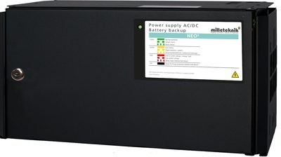 Primärswitchad batteribackup 24V 15 (A) Ampere med plats för 2x 20Ah batterier. Skydd för överbelastning, överspänning, övertemperatur, kortslutning och djupurladdning. Larm för (3 utgångar): Fördröjt nätavbrottslarm (10 sek), låg batterispänning, över/underspänning, frånkopplat batteri, cellkortslutning, laddarfel, låg systemspänning, utlöst lastsäkring samt sabotage. 1 st dubbelpoligt avsäkrad utgång + 1 st enkelpoligt (+) avsäkrad utgång. Den välventilerade kapslingen är lackerad i svart färg med struktur, lysdiod för larmindikering samt utrustad med 3 st knockouts för kabelgenomföringar samt knockout i ryggen. Enheten kan både väggmonteras och rackmonteras (vändbara vinklar medföljer). Observera att batterier tillkommer. 2 års garanti. NEO FLX M serien används normalt i säkerhetsanläggningar där kraven är högre gällande kvalité och larmfunktioner. NEO serien erbjuder INTELLIGENT CHARGING vilket innebär att när batterierna är fulladdade kommer de att kopplas ur elektroniskt för standby-läge i upp till 20 dygn. Genom att var 20:e dygn ladda batterierna (istället för att de inte alls används) bidrar systemet till att förlänga batteri-livslängden med upp till 50%. Batterierna ansluts automatiskt igen på mindre än 50 mikrosekunder när de behövs. NEO serien kan användas både med AGM-batterier och Lithium LiFePO4-batterier. NEO FLX M serien kan kompletteras med upp till 4 batteriboxar eller batterihyllor om det behövs. Batteriboxen skjuts in i underkant av batteribackupen och har plats för upp till 2x 45Ah batterier per varje batteribox. Batteriboxarna och hyllorna ansluts enkelt via en jackbar kontakt.