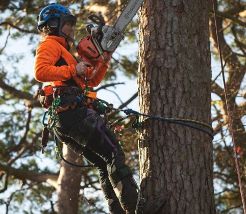 - Avancerat stretchmaterial: Hög andningsförmåga och flexibilitet som följer kroppens rörelser vid klättring och arbete i träd.