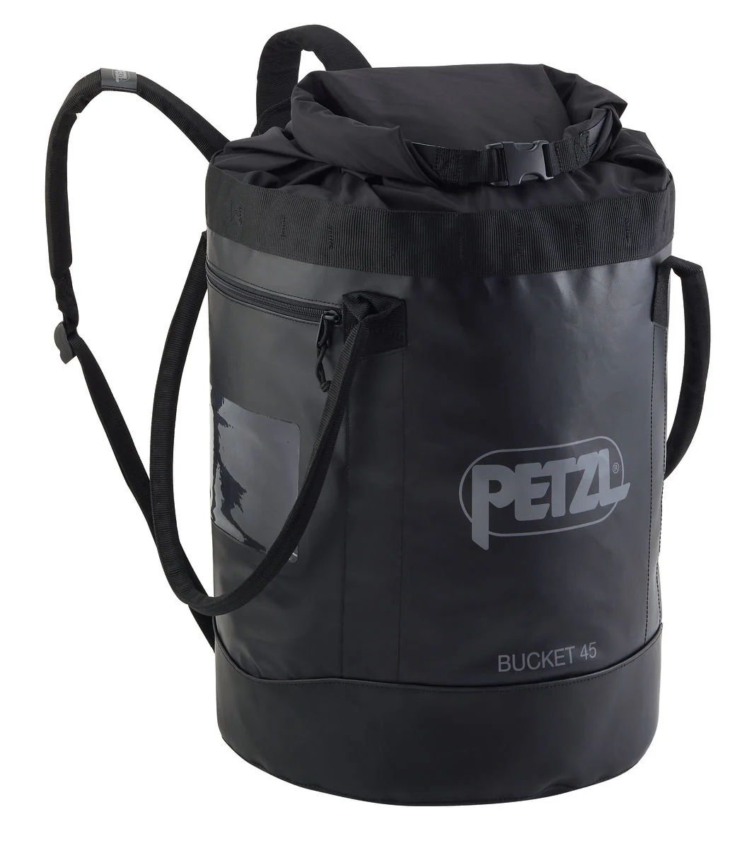 BUCKET 45 är en slitstark och rymlig repväska på 45 liter för arborister, klättrare och industriella användare. Den står stadigt upright, behåller formen även tom och rymmer upp till 185 meter 11 mm rep för enkel åtkomst och organisation.