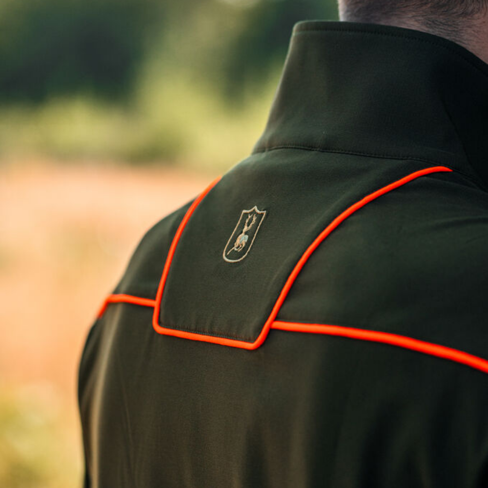 Den vattenavvisande ytan skyddar mot lätt regn, dagg och våta grenar, medan den andningsbara konstruktionen motverkar att du blir fuktig när pulsen stiger. De många fickorna gör det enkelt att ha radio, mobil, nycklar och jaktrelaterad utrustning organiserad och nära kroppen – utan att något hänger och slänger.