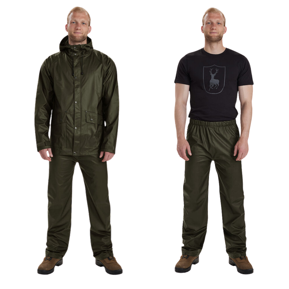 Köp Deerhunter Hurricane regnställ herr hos Wolf Tactical – vattentät jacka + byxor i ett