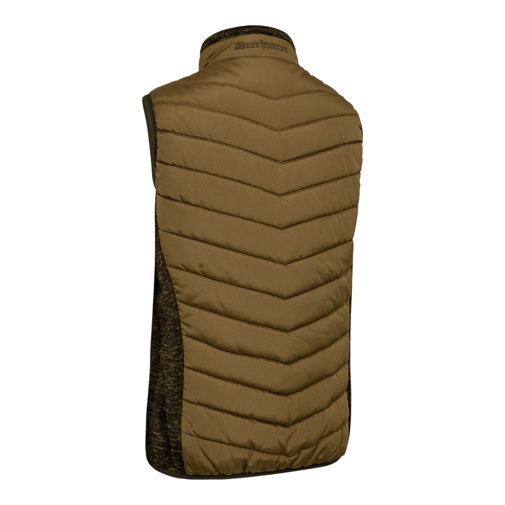 Västen är vadderad med DEER-TEX® Temp, som håller överkroppen varm i kyligt väder. Samtidigt bidrar stickade partier i sidorna och vid axlarna till flexibilitet när du går, lyfter armarna eller arbetar aktivt. Resår vid ärmhålen och i nederkanten stänger inne värmen, så att du inte förlorar komfort när vinden tar i.
