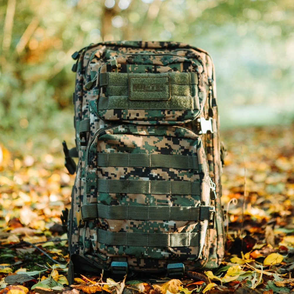 Köp Digital Woodland Camo Skolväska hos Wolf Tactical – 36L med gott om plats och komfort