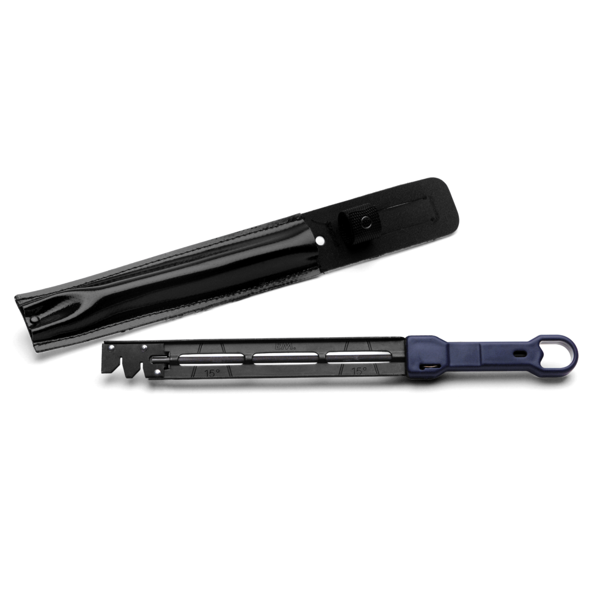 Filmall med fil för sågklinga som försäkrar korrekt filteknik och filvinkel.