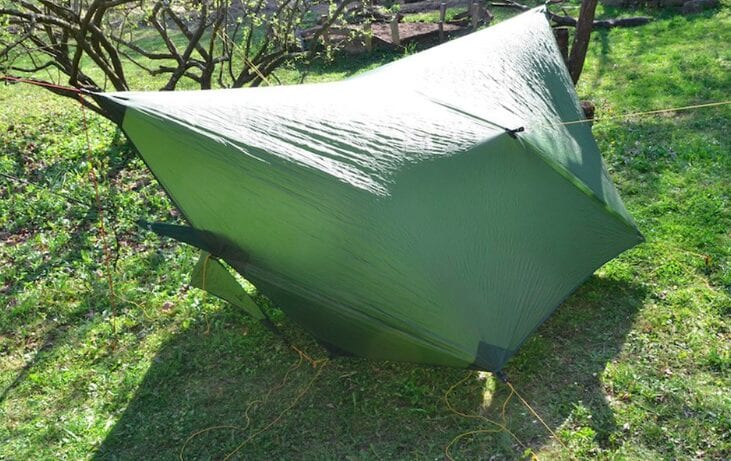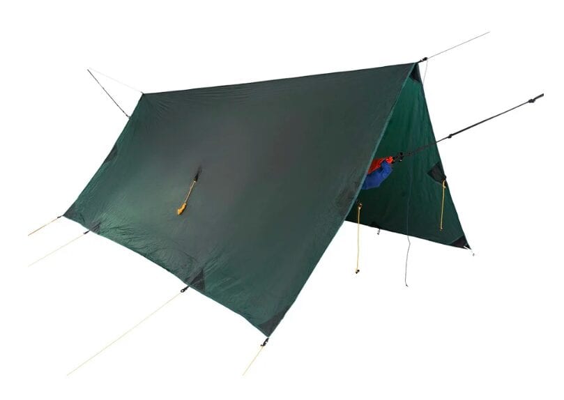 Full Moon tarp är avancerat i alla väderskydd som du kan ställa in i en mängd olika konfigurationer. Vare sig det är ett A-ram tältliknande skydd i utmanande väder, eller som en diamanttajp med maximalt luftflöde och sikt under mildare förhållanden, vi har täckt dig. Tack vare det hållbara Sil-Nylon 20D-tyg av hög kvalitet är denna presenning inte bara helt vattentät och lätt, men den är väldigt tyst även i kraftigt regn.