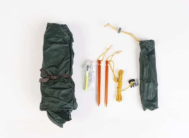 Snabbt skydd mot regn, sol och vind, samtidigt som vikten minskas till ett minimum! Installera den högt för maximal skugga och luftflöde, eller lågt för att hålla regn och vind borta. De förstärkta sidorna, hörnen och utdragningspunkterna gör denna minimalistiska utrustning förvånansvärt robust. Sil-Nylon 20D-materialet gör det möjligt för Lightest Tarp att erbjuda alla funktioner, eftersom det levereras med snabbspännande spännen i alla fyra hörnen, två pinnar och extra utdragbara ögonlås. De fyra extra ögonlåsarna, halvvägs, gör det mycket anpassningsbart för att skapa en veranda eller markis med ytterligare stolpar och snören. Alla killar hålls bekvämt i fickorna så att de inte trasslar.