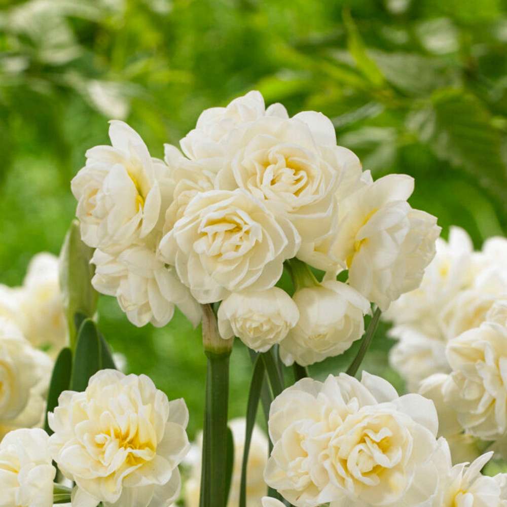 Vill du ha en annorlunda narciss i trädgården? Då är ‘Erlicheer’ ett riktigt bra val. En överdådig och förförisk narciss som för med sig vintage-elegans och en intensiv doft till vårträdgården. Varje stjälk bär en tät bukett av små, fyllda blommor i krämvitt med en lätt gyllene ton i mitten.