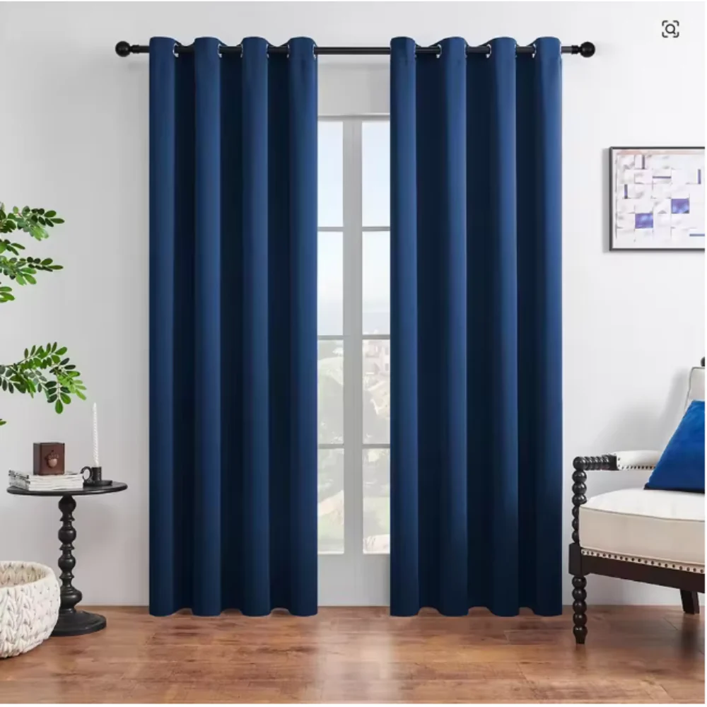 Gardinerna är försedda med öljetter upptill, vilket gör dem enkla att hänga upp på de flesta gardinstänger. De kan användas ensamma för en stilren look eller kombineras med ljusare gardiner för en mer dynamisk inredning.