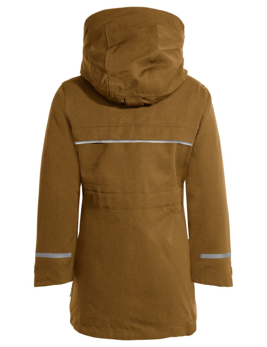 De justerbara muddarna håller värmen inne trots isiga vindar. Denna urbana vardagskompis har ett rakt snitt för killar – men ryggen kan även dras ihop lite genom midjejustering, vilket ger en mer feminin look för tjejer. En smart designad, slitstark barnparkas tillverkad av ett robust återvunnet material, som – i enlighet med hållbarhetsprincipen – även kan föras vidare till yngre syskon och ger ett värdefullt bidrag till miljö- och klimatskydd.