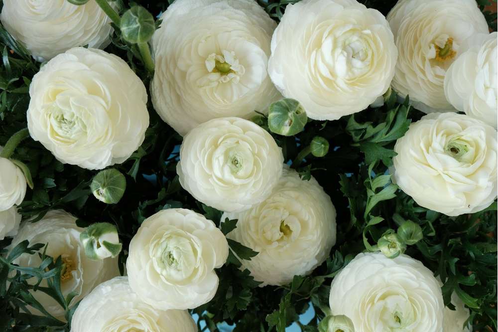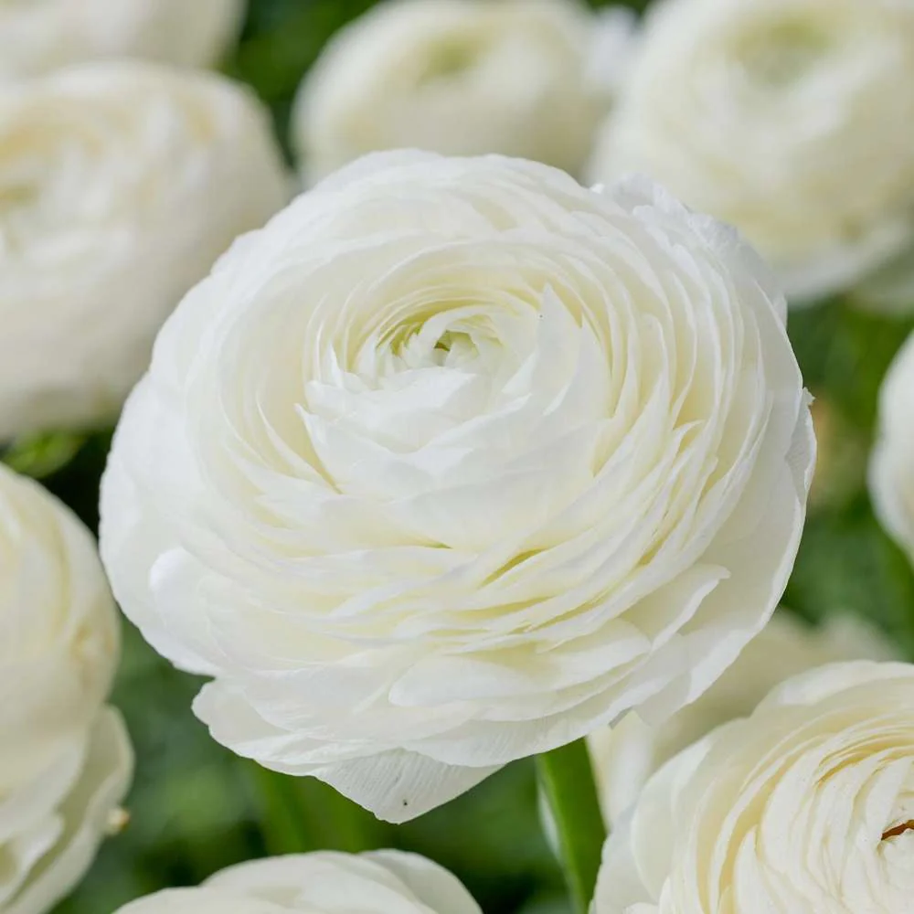 Vit ranunkel är en elegant och tidlös ranunkel som får fylliga, rosettliknande blommor i ren vit färg. De silkeslena kronbladen bildar täta lager, vilket ger blomman ett lyxigt och romantiskt utseende. Denna vårblomma trivs i soliga till lätt skuggiga lägen och i väldränerad jord. Den vita ranunkeln är perfekt för rabatter, krukor och som snittblomma och ger en sofistikerad skönhet till vackra buketter.