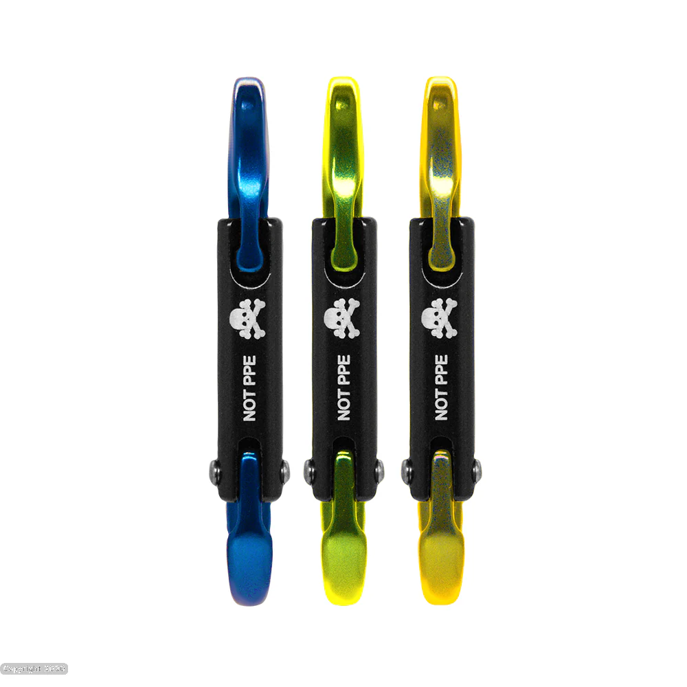 - Färgkodade karbinhakar (blå, grön, guld) för enkel identifiering