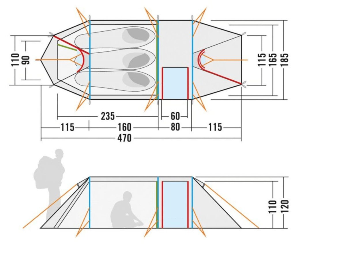 - Två ingångar till innertältet, en med myggnät som kan stängas separat
