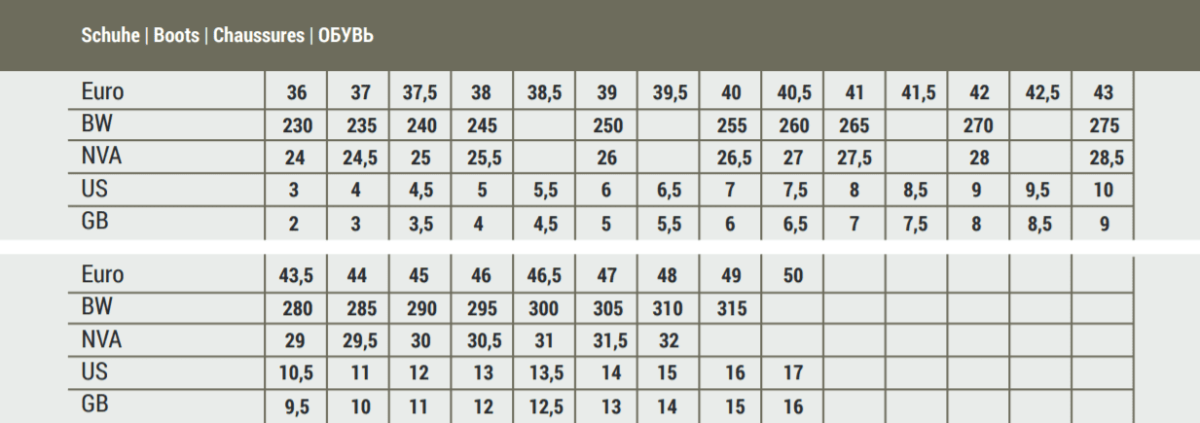 MIL-TEC-skor marknadsförs ofta endast i amerikanska eller brittiska storlekar, därför kan det finnas minimala avvikelser i den direkta jämförelsen med EU-storlekar. Om du är osäker på storleken, eftersom du vanligtvis är mellan två storlekar, rekommenderar vi följande: