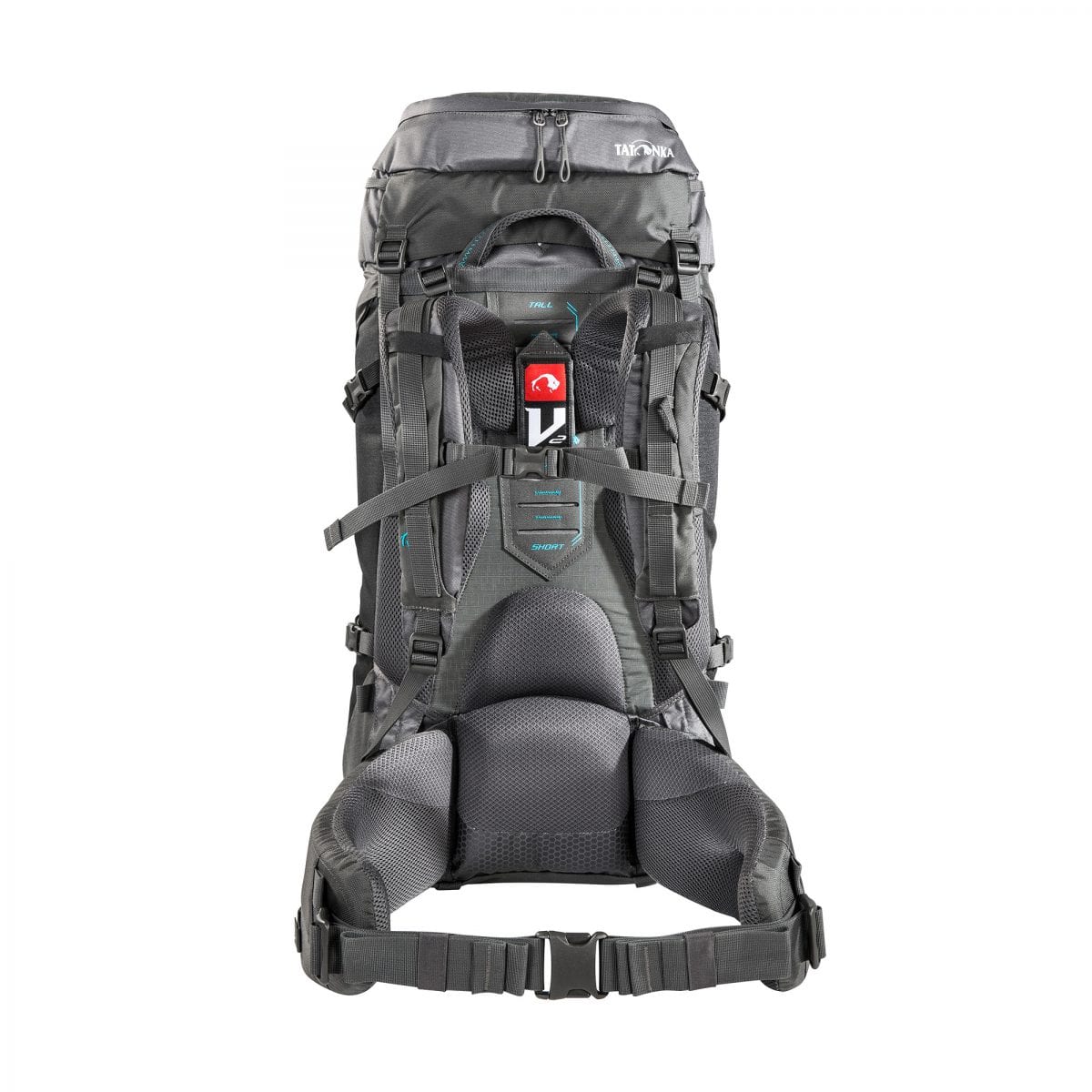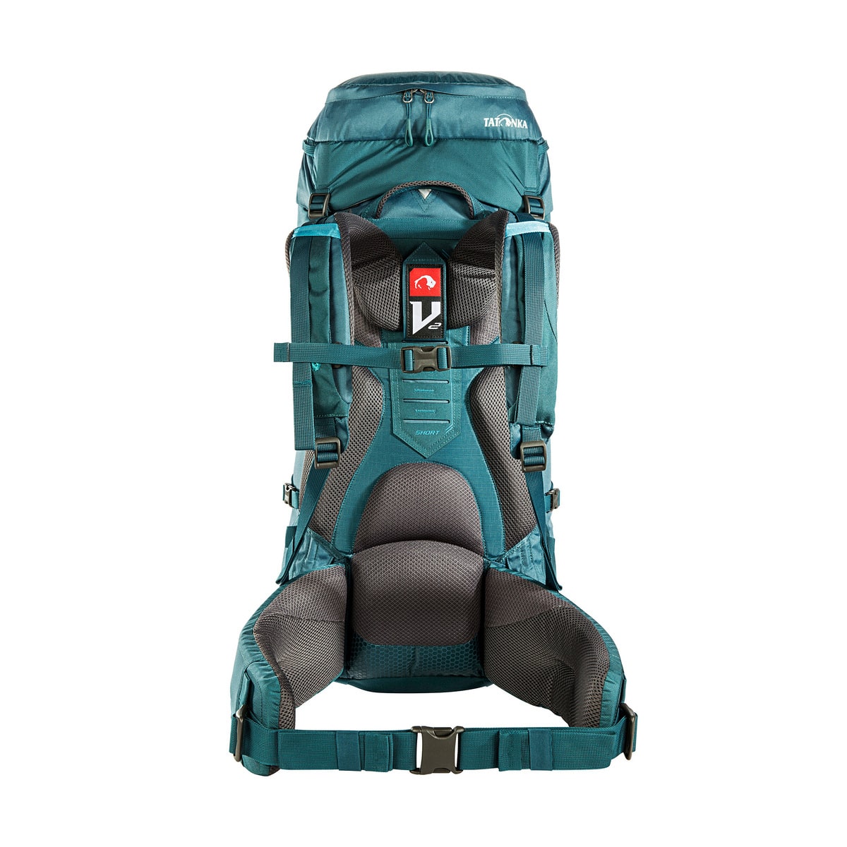 V2-stödsystemet i Tatonka Yukon, som har rankats utmärkt i många år, har förbättrats ytterligare när det gäller sin egen vikt och effektivitet vid belastningsöverföring till höftområdet: å ena sidan med lättare material, å andra sidan handen med det tredimensionella höftbältet som passar ännu mer bekvämt till höften. Bärsystemet kan anpassas till din egen rygglängd.