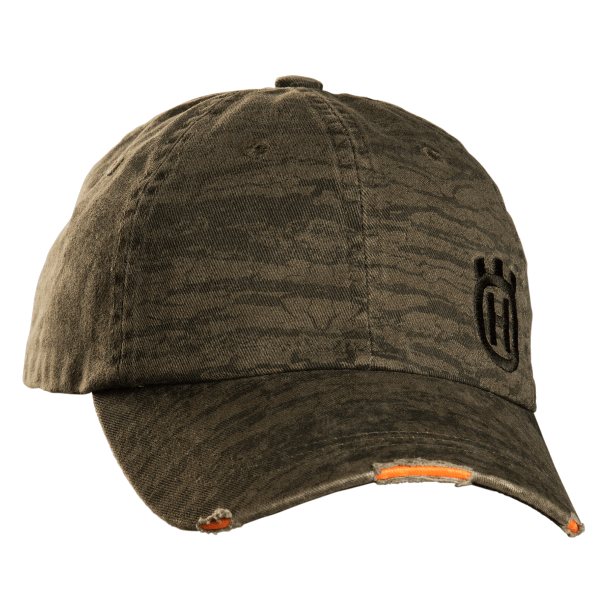 En skogsgrön vintage-keps med barkmönstrad kamouflage och justerbart läderband. Bandet baktill gör att du lätt kan justera kepsen för perfekt passform.